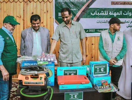مركزُ الملكِ سلمانَ للإغاثة يُوَزِّعُ أدواتِ المهنة للمستفيدين من مشروع دعم تمكين الشباب والشابات وسلال غذائية في اليمن