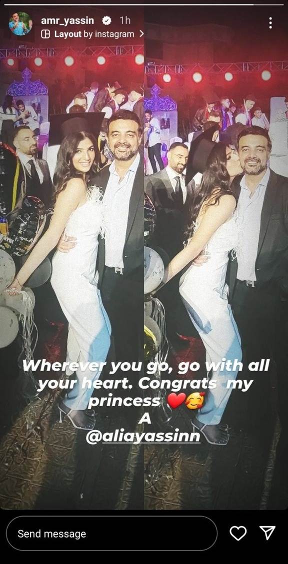 احتفل الممثل والكاتب المصري عمرو محمود ياسين، بتخرج ابنته “عليا” وذلك عن طريق نشر عدة صور تجمعه بها عبر حسابه الرسمي بموقع تبادل الصور والفيديوهات الشهير انستجرام.