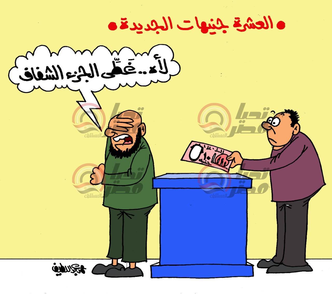 "نغطى الجزء الشفاف"..أجواء العشرة جنيه الجديدة بكاريكاتير تحيا مصر