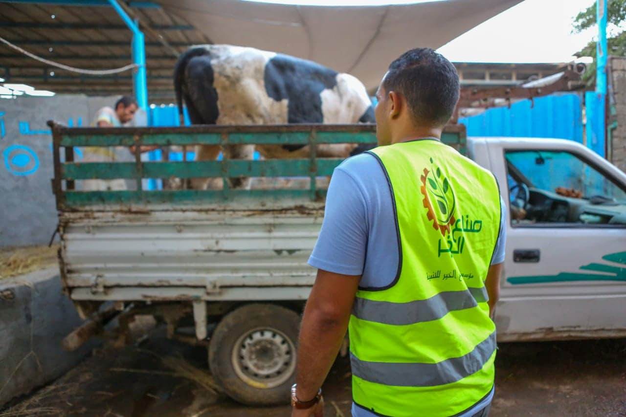 بالصور.. «صناع الخير» تنقل أضاحيها لمحافظات التوزيع للبدء في الذبح غدًا