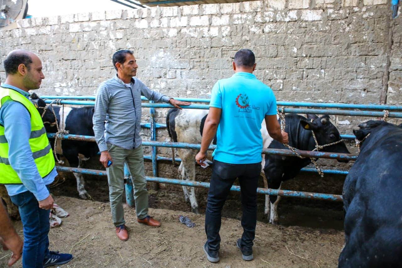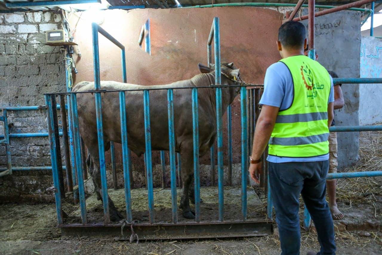 من جانبه اوضح الدكتور محمد عبدالجليل مدير ادارة المشروعات بصناع الخير ان رؤوس المواشى البلدية العجالى والجاموسى التى تم اختيارها لكى تقوم صناع الخير بذبحها نيابة عن المضحين من بعد صلاة العيد غدا باذن الله تم الحرص على ان تتوافر فيها الشروط الشرعية للاضحية من خلوها من الامراض وسلامتها البدنية الكاملة وغيرها من الاشتراطات واشار عبدالجليل الى أن مراحل التنفيذ على الارض لمبادرة صناع الخير للإنابة عن المضحين فى ذبح اضاحيهم وتوزيعها على المستحقين اعتمدت فى الوصول للمستحقين على عدد كبير من الجمعيات القاعدية فى القرى المستهدفة وكذلك التعاون مع الجهاز التنفيذى لكل محافظة ضمانا لتزليل اي عقبات فى التنفيذ ووصولا للمستحقين حتى منازلهم.