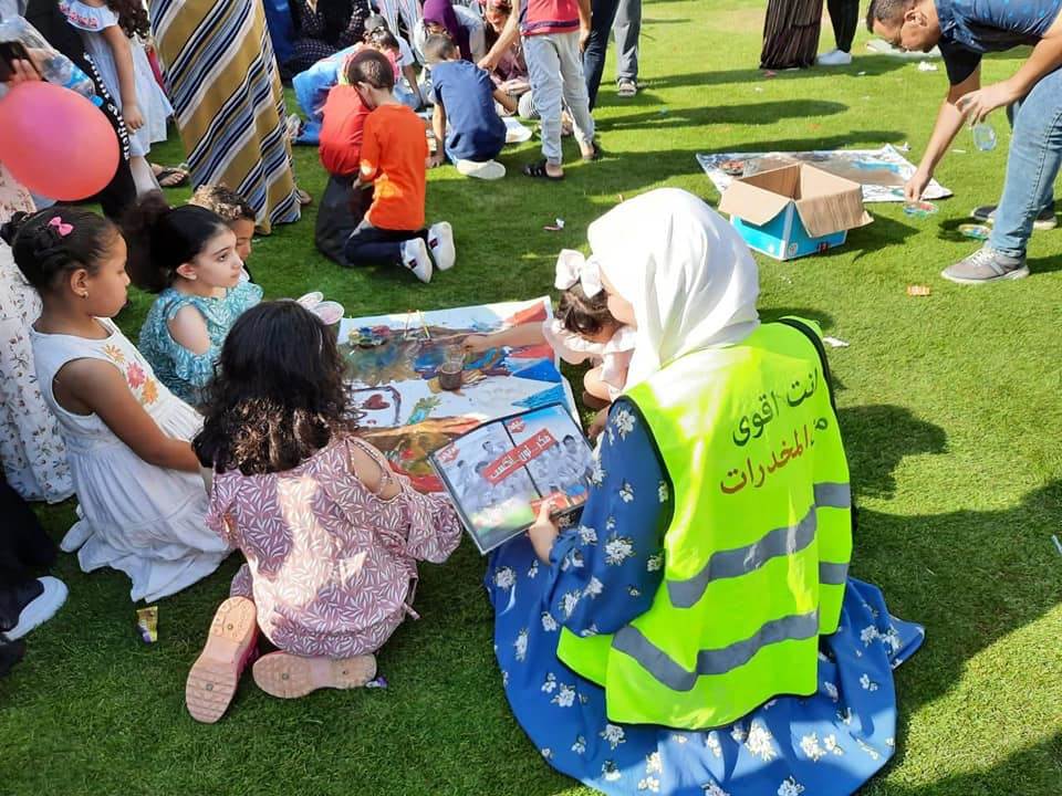 وتضمنت المبادرة عروض وأنشطة فنية وتلوين الكراسات وتوزيع بلالين على الأطفال تحمل رسائل توعوية ورقم الخط الساخن لعلاج الإدمان 16023، كما تضمنت المبادرة أيضا رسائل توعية للشباب والأسر بأضرار التدخين وتعاطي المخدرات كذلك تنفيذ ورش عمل حكي للأطفال بالمراحل العمرية المختلفة من خلال استخدام أساليب غير تقليدية تتماشى مع المراحل العمرية المختلفة لتسليط الضوء على أضرار المخدرات