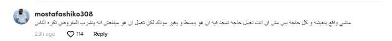 حيث قال تعليق: “ماشي واقع بنعيشه و كل حاجه بس مش ان انت تعمل حاجه تمجد فيه ان هو بيبسط و يغير مودك لكن تعمل ان هو مينفعش انه يتشرب المفروض تكره الناس”.