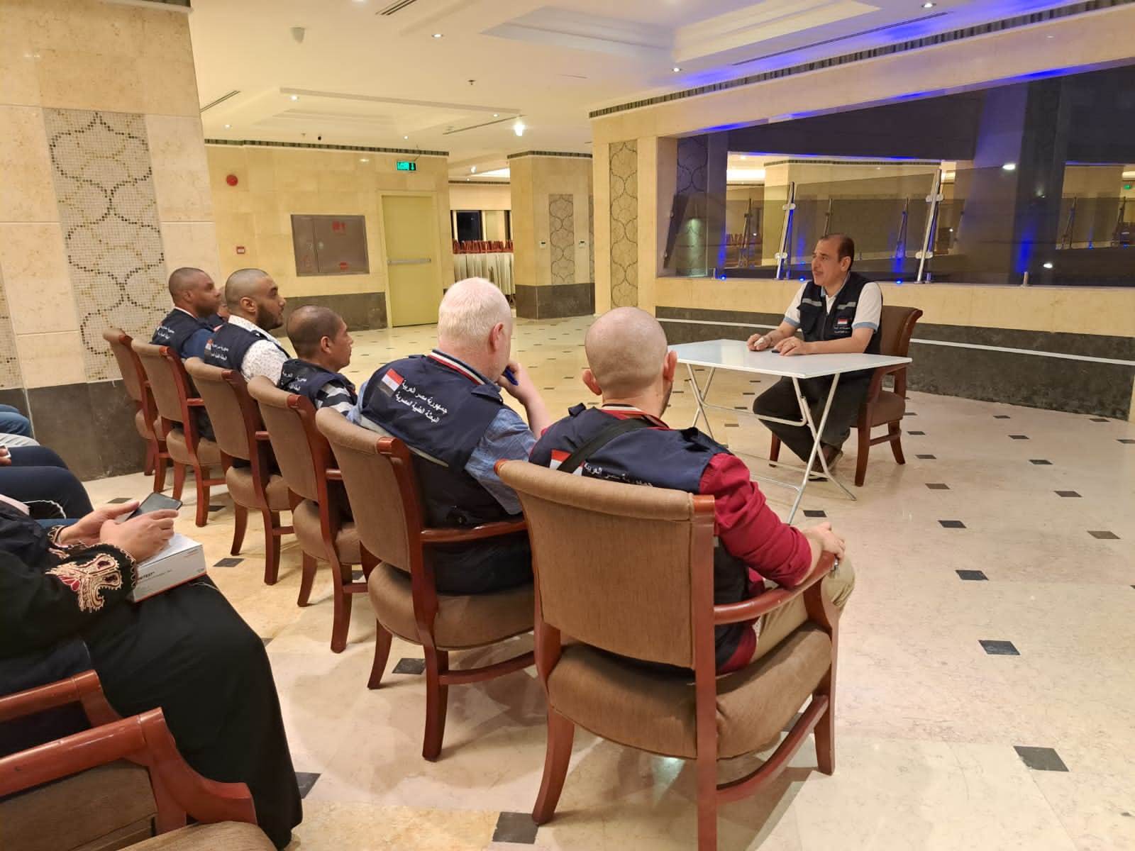 وأضاف «قنديل» أن فرق البعثة الطبية، تواصل مرورها الدوري على مقرات إقامة الحجاج المصريين، والمساجد، وأماكن التجمعات وأتوبيسات المغادرين لتقديم التوعية بالاجراءات الوقائية والتعريف بمواعيد وأماكن تقديم خدمتي «اطمن على نفسك»، و«معك حتى تصل بأمان»، والتأكيد على ضرورة العزل الذاتي لمدة خمس أيام والتباعد الاجتماعي، وارتداء الكمامات لحماية أنفسهم وأسرهم من الأمراض.