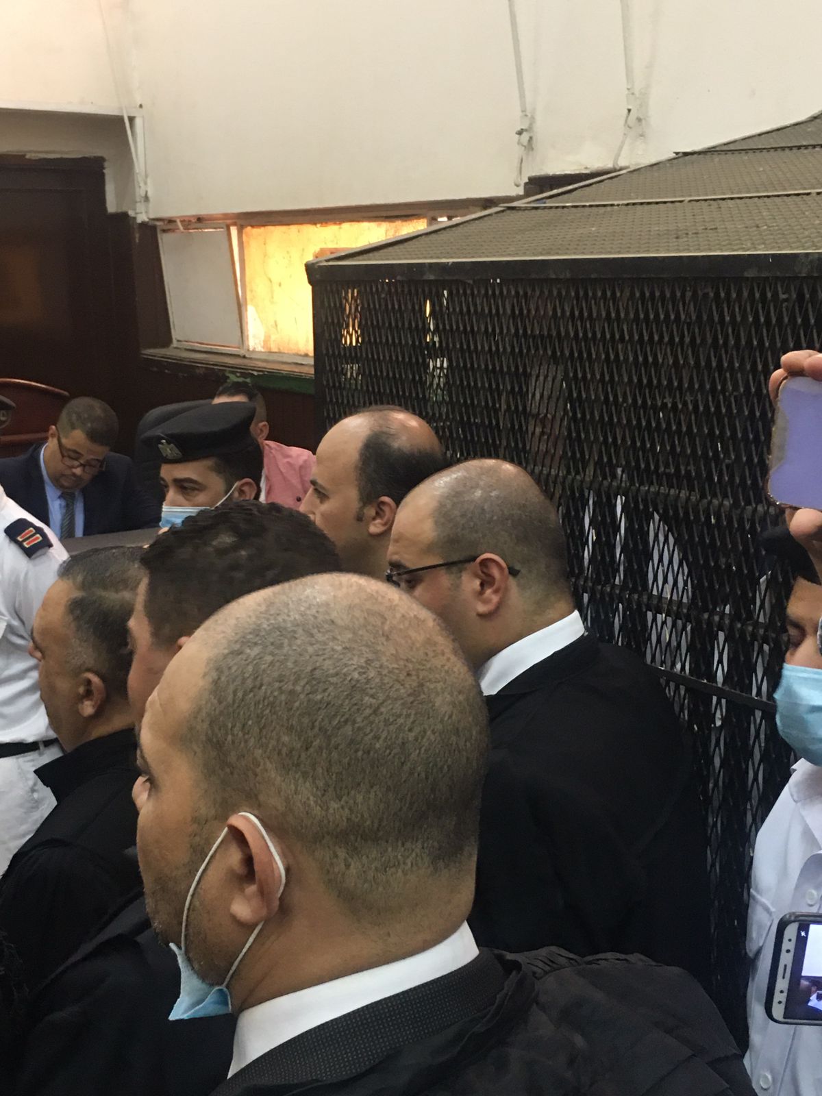 وظهر المتهمين بقتل المذيعة شيماء جمال داخل قفص الاتهام بمحكمة جنايات الجيزة، يرتدون زى السجن الأبيض ويحاولان الإبتعاد عن كاميرات التصوير الصحفية.
