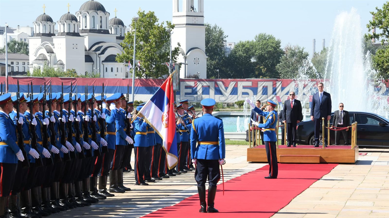استقبل الرئيس الصربي ألكسندر فوتشيتش، الرئيس عبد الفتاح السيسي، صباح اليوم الأربعاء، في قصر صربيا الرئاسي، مرحبًا به ضيفًا عزيزا على صربيا للمرة الأولى، حيث أقيمت مراسم استقبال رسمية، وتم عزف السلامين الوطنيين واستعراض حرس الشرف.