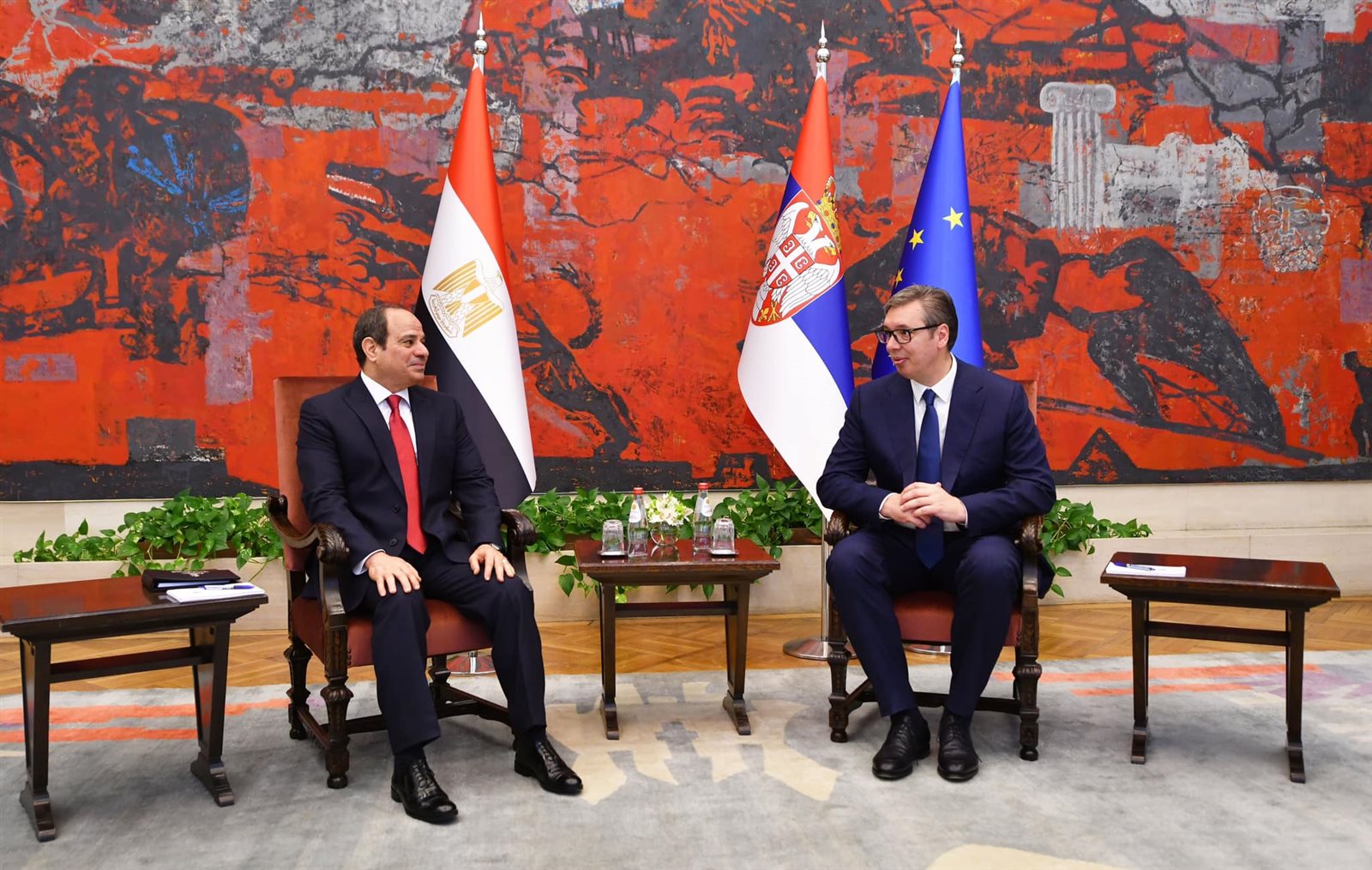 وصرح السفير بسام راضي، المتحدث الرسمي باسم رئاسة الجمهورية، أن الرئيس السيسي عقد جلسة مباحثات على مستوى القمة مع نظيره الصربي، الذي أعرب عن تقدير بلاده لمصر قيادة وشعبًا، ومشيداً بالعلاقات الثنائية الوثيقة التي تربط بين مصر وصربيا، مع تأكيد حرص بلاده على مواصلة الارتقاء بتلك العلاقات وتعزيز التعاون والتنسيق بين البلدين الصديقين على جميع المستويات، لاسيما في ضوء دور مصر المحوري كركيزة للاستقرار والأمن والسلام في الشرق الأوسط وأفريقيا.