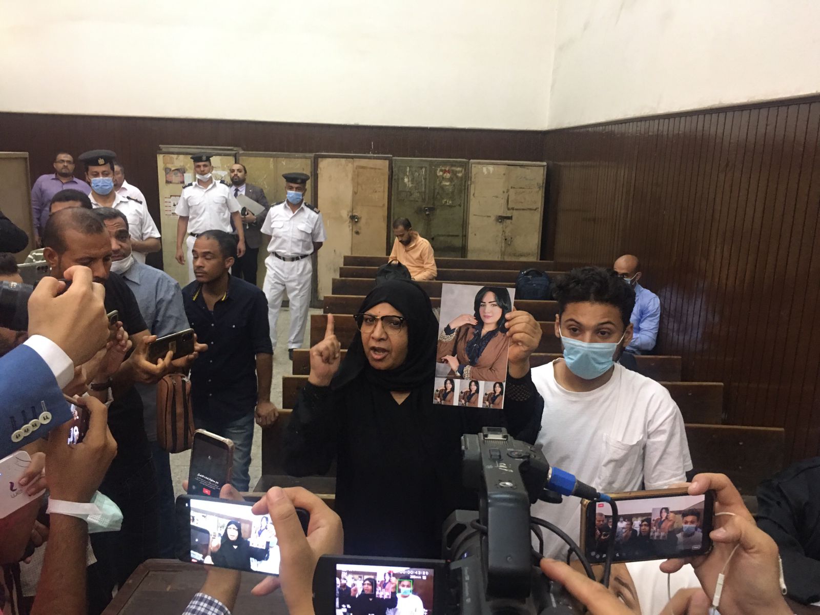 حضرت والدة الإعلامية شيماء جمال أولى جلسات محاكمة المتهمين بقتل ابنتها وسط حالة من الانهيار والحزن وظهر عليها الانكسار بسبب فقدانها على يد زوجها القاضي الذي دفنها داخل حفرة بمزرعة بالبدرشين.