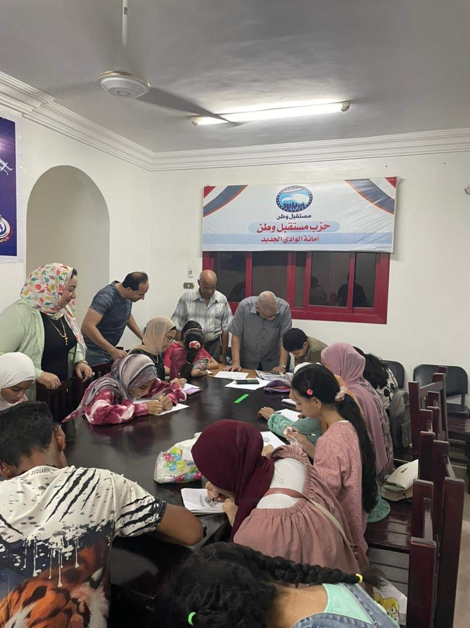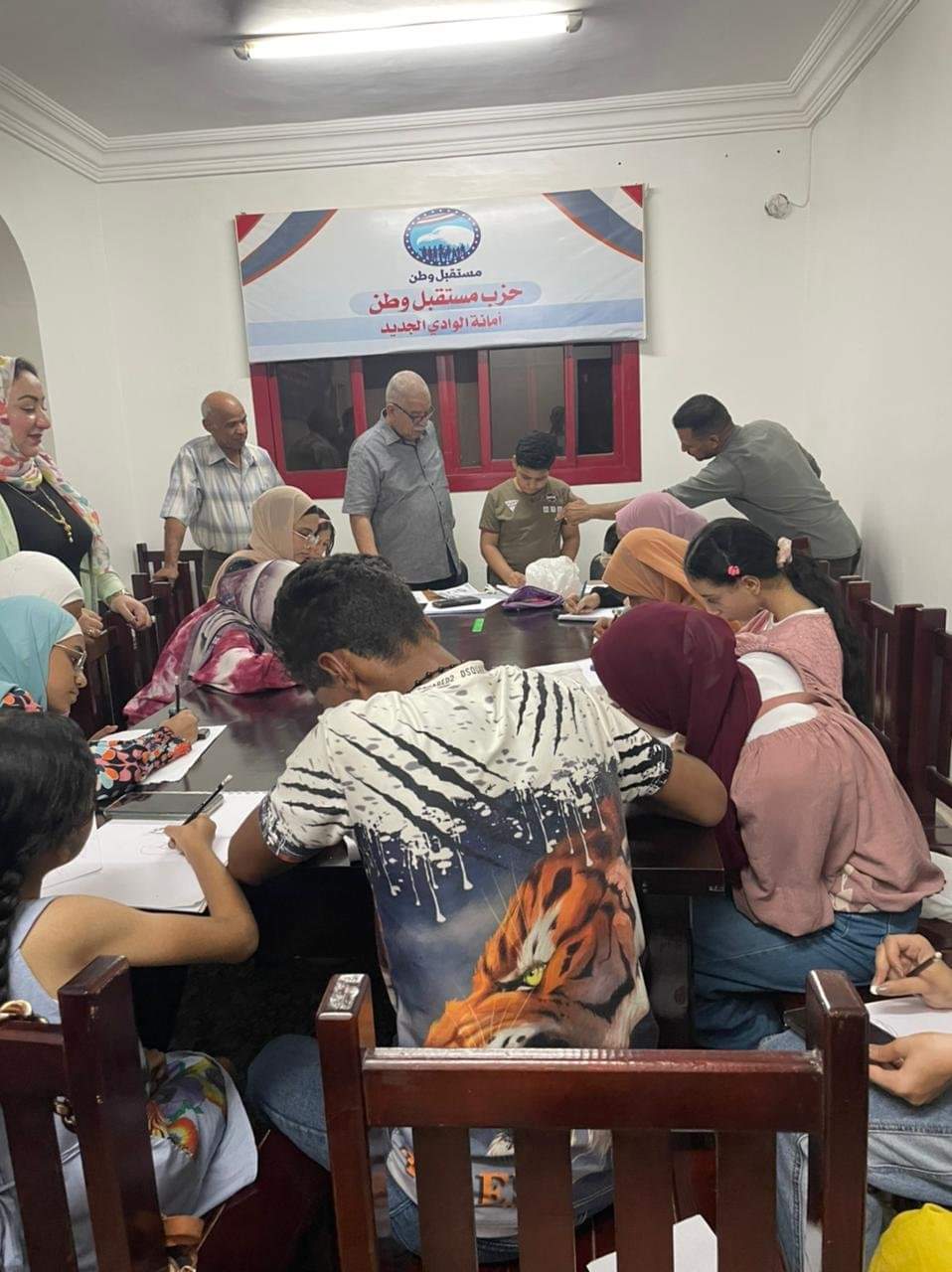 وجاءت البداية لحزب مستقبل وطن من محافظة الوادي الجديد، حيث نظمت أمانة مركز الداخلة، ندوة تثقيفية، عن دور المرأة في الجمهورية الجديد، والتي نظمت بمقر جمعية تنمية المجتمع المحلي بعزبة عبد القادر التابعة لقري الموهوب، وتناولت الندوة أهمية دور المرأة في المجتمع، كما ناقشت الندوة، الحديث عن دور المرأة في التنمية وبناء الجمهورية الجديدة وبناء الجمهورية الجديدة، وكيف تساهم في نهضة المجتمع واهتمام الدولة بالمرأة ودعمها وتمكنيها بالإضافة لعرض نماذج ناجحة من المرأة علي المستوي المحلي والقومي، وعلي جانب أخر، نظمت أمانة مركز الخارجة، ورشة عمل فنية تحت عنوان "رسم مناظر طبيعية وطبيعة صامتة"، بحضور 30 طفل من أعمال مختلفة بمقر الحزب، ويهدف التدريب إلي تدريب الموهوبين كيفية الرسم بالفحم والرصاص ومناظر طبيعية ومناظر صامتة وبورتيرهات للعيون المبتدئين والموهوبين وتنمية المهارات الحركية الدقيقة للأصابع، حيث حضر التدريب نخبة من أمانة المحافظة لدعم الأطفال وتشجيع مثل هذه التدريبات الهادفة.