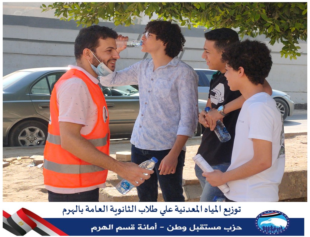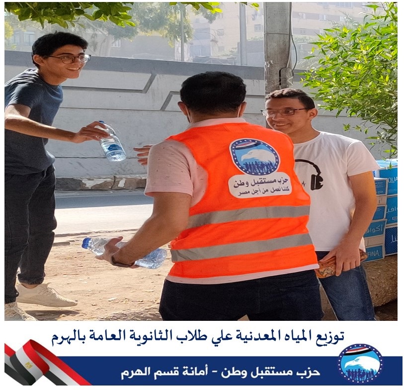 وفي محافظة الجيزة، قامت أمانة قسم الهرم بحزب مستقبل وطن ، بتوزيع زجاجات المياه المعدنية علي طلاب الثانوية العامة، ومن جانبه، استمرت أمانة مركز البدرشين، المراجعات الثانوية العامة، للعام الثالث علي التوالي بالتعاون مع مجلس الأمناء الإدارة.