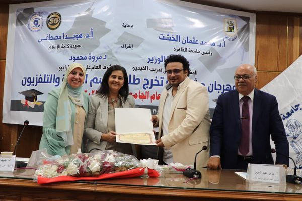 نظمت كلية الإعلام جامعة القاهرة، فعاليات مهرجان مشروعات تخرج طلاب قسم الإذاعة والتلفزيون بالكلية، لشعبة الراديو، تحت رعاية الدكتور محمد عثمان الخشت، رئيس جامعة القاهرة، والدكتورة هويدا مصطفى، عميدة كلية الإعلام جامعة القاهرة، والدكتورة جيهان عبد الحميد، المشرف على مشروعات تخرج شعبة الراديو بالكلية، والدكتورة شيماء حسنين، المشرف على مشروعات التخرج.
