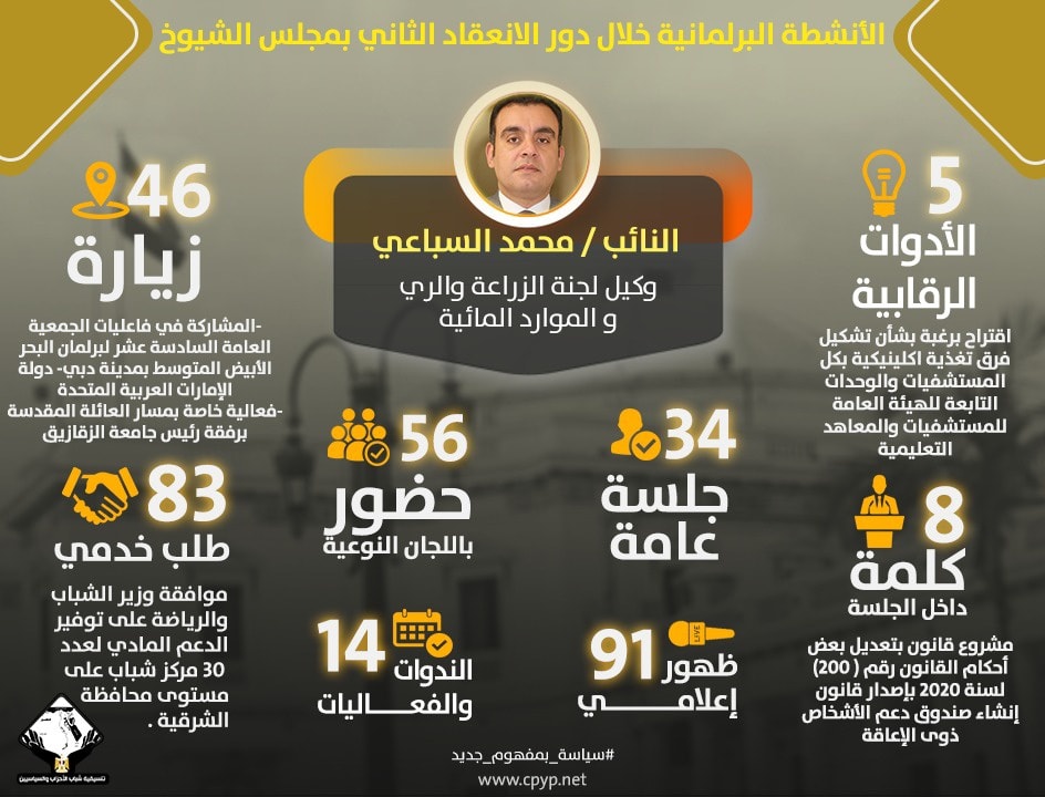 بالإنفوجراف..حصاد النشاط البرلماني لـ «نائب التنسيقية» محمد السباعي