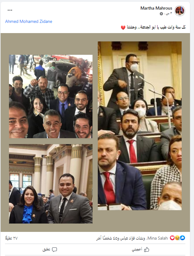بينما علق النائب محمد تيسير مطر، عضو لجنة حقوق الإنسان، قائلا:" انهارده عيد ميلاد اخويا وحبيبي الغالي اوووى اللي مفتقده جدا عيدك في الجنه يا حبيبي وحشتني اوى يا اجدع نائب واخ ربنا يرحمك ويغفرلك..رجاء من حضراتكم الدعاء للاخ الغالي احمد زيدان بالرحمه والمغفرة".