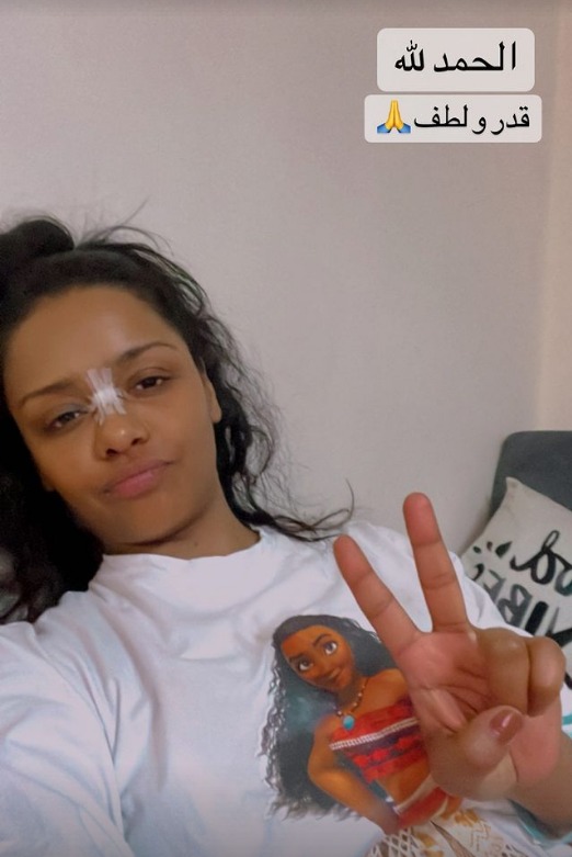 أسماء أبو اليزيد تتعرض لإصابة في الأنف.. وتعلق: "قدر ولطف"