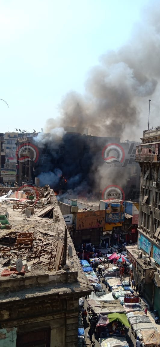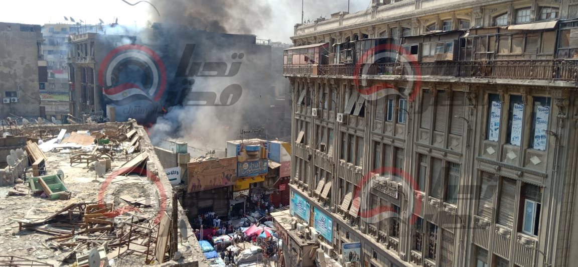 حريق هائل في محلات تجارية بمنطقة العتبة| صور