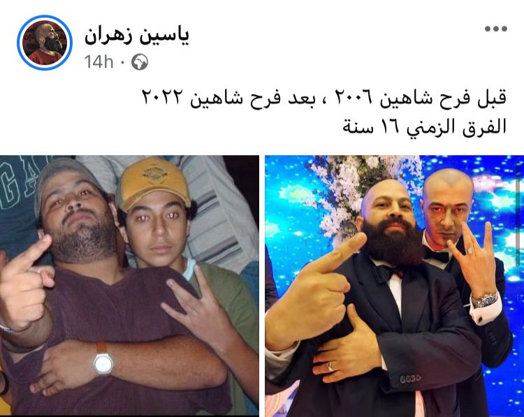 وشارك صديق شاهين صورة معه أثناء مرحلة الشباب، وعلق عليها: قبل فرح شاهين 2006 بعد فرح شاهين 2022 الفرق الزمني 16 سنة.