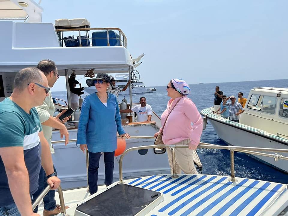 وزيرة البيئة في جولة بحرية مفاجئة لمتابعة تنفيذ خطة الأنشطة البحرية بشرم الشيخ