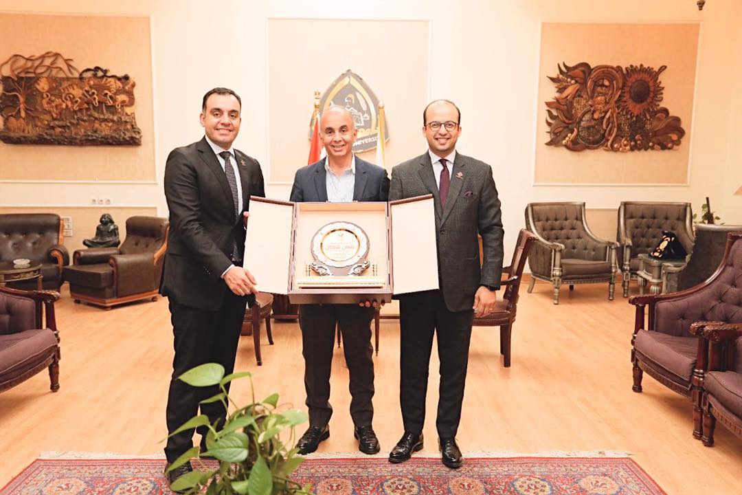 وأهدي النائبان محمد السباعي، ووكيل لجنة الزراعة والري بمحلس الشيوخ، والدكتور خالد بدوي، عضو لجنة الشباب والرياضة بمجلس النواب، درع تذكاري لرئيس الجامعة نظراً لجهوده الحثيثة في تطوير جامعة الزقازيق.