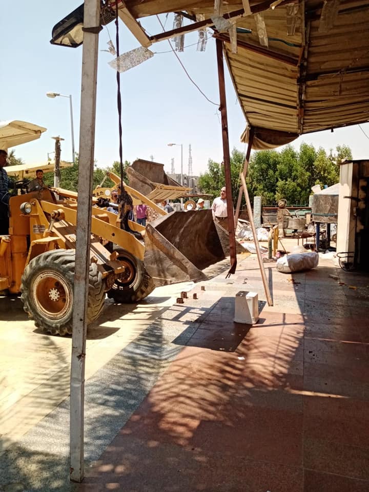 وقال: قامت الحملة بالمرور على منطقة الحي ١٦ للتأكد من عدم وجود باعة جائلين بالكتلة السكنية وتم رفع إشغالات وتعديات أمام ٣ كافيهات مخالفة بقطع سكنية بالمجاورة ١٩ أمام نادى الرواد وغيرها .