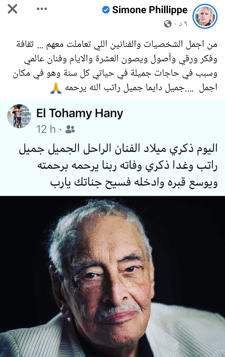 أحيت الفنانة سيمون ذكرى ميلاد الفنان الراحل جميل راتب الذي رحل عن عالمنا في 19 سبتمبر عن عمر يناهز 92 عام، ووجها له رسالى بكلمات مؤثرة