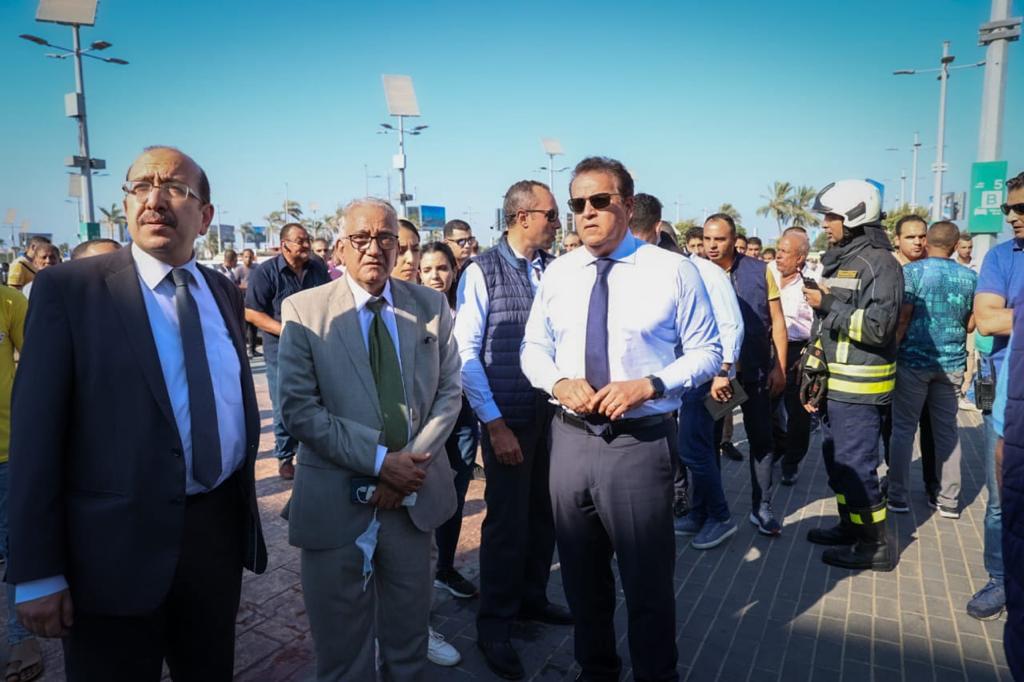 وزير الصحة يقطع زيارته للمنشآت الطبية بالإسكندرية ويتابع تقديم الخدمات الطبية في حريق كارفور
