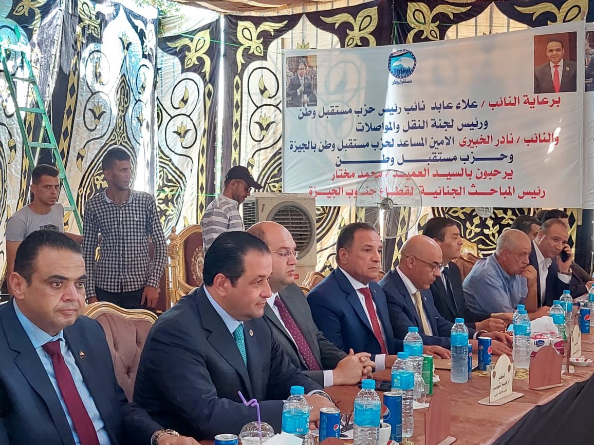 جاء ذلك بحضور عدد كبير من أعضاء مجلسي النواب والشيوخ، النائب عصام هلال الامين العام المساعد لحزب مستقبل وطن،واللواء صلاح أبو هميله رئيس الهيئة البرلمانيه لحزب الشعب الجمهوري، والنائب احمد سعد نويصر، النائب حازم عويان، النائب حسام عاشور، النائب خالد تامر طايع، النائب طارق الطويل، اللواء عماد الدرجلي، النائب حمدي ابو خشيم ، النائب عيد حماد ، النائب شحاته أبو زيد، النائب عمرو كمال العربي، النائب عمرو هندي ، النائب عمرو عكاشة عضو مجلس الشيوخ، النائب أحمد دياب ، النائب ايمن شكري،النائب علاء ناجي ، وليد المليجي، النائب علي سماح، بالاضافه لعدد كبير من شيوخ وعمد قري ومراكز جنوب الجيزة ، وبحضور رجال الأزهر والكنيسة.