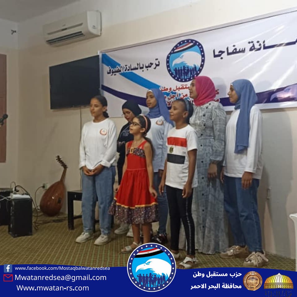 وفي محافظة البحر الأحمر، واصلت أمانة مدينة سفاجا، تصفيات المرحلة الأولى الخاصة بالمدن في ملتقى حزب مستقبل وطن الفني لاكتشاف المواهب، حيث أجريت التصفيات في مقر الأمانة، حيث أن الملتقي انتهى من تصفيات مدن سفاجا ورأس غارب والقصير استعدادا للتصفيات النهائية بالمرحلة الأخيرة بالمحافظة، والتي تنظمها أمانة الثقافة والفنون والرياضة.