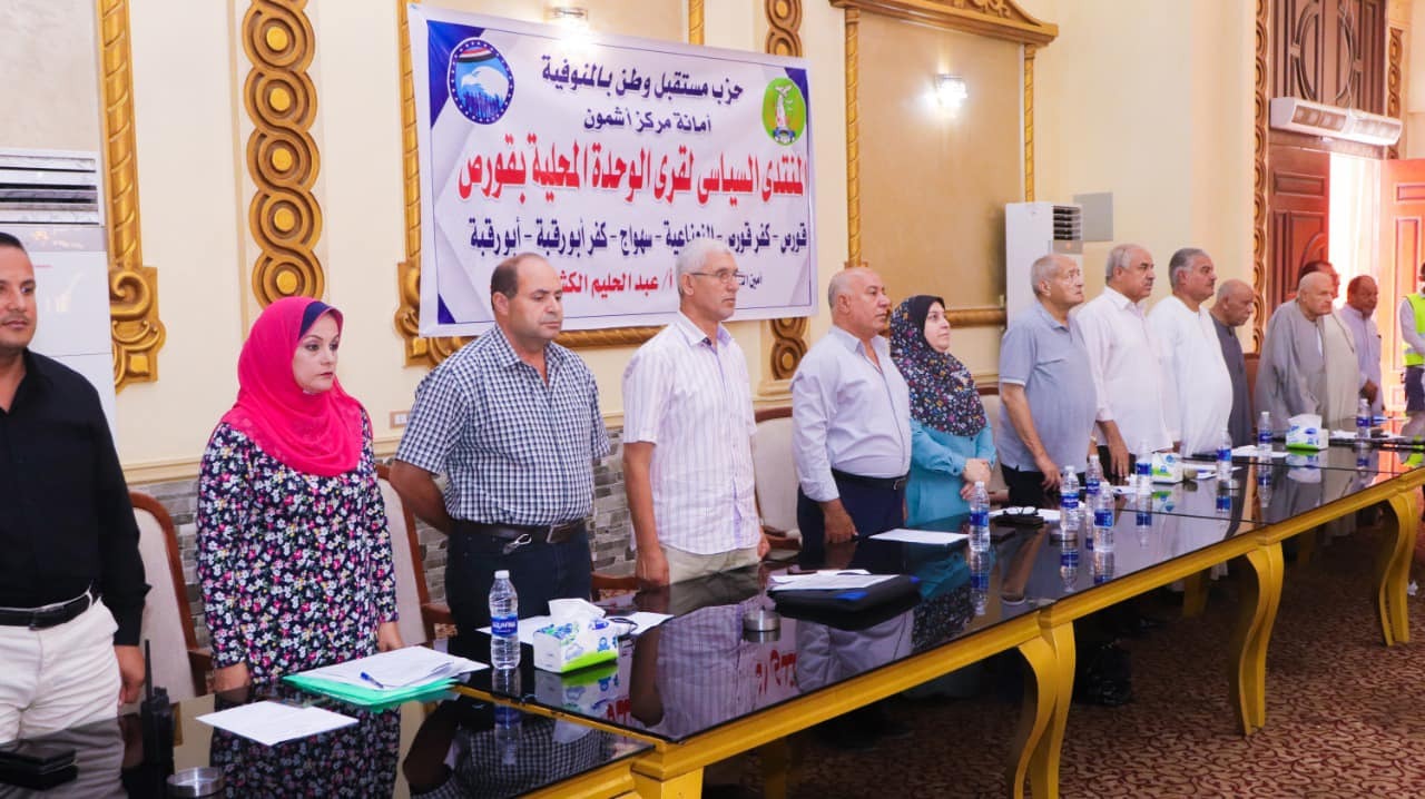 كما نظمت أمانة مركز أشمون، المنتدي السياسي لقري الوحدة المحلية بقورص، في قرية حورس والتي تضم "قورص- كفر قورص- النعناعية- سهواج- كفر أبو رقبة- أبو رقبة"، وذلك للإستماع لمطالب الوحدات المحلية، وتناول المنتدى القضايا التى تهم الجميع من كهرباء وصرف صحي ومياه شرب ومدارس وطرق ورى وتبطين ترع بتغطيتها وقامت أمانة المرأة بتناول الردود على قضايا المنتدى بمساعدة رئيس الوحدة المحلية بقورص وقد منح أمين الحزب بأشمون فرصة التوضيح للتنفيذيين وبخاصة وكيل الوزارة رئيس الوحدة المحلية لمركز ومدينة أشمون وكذلك مدير شركة مياه الشرب والصرف الصحى، فيما شارك السادة النواب فى الرد على مطالب الحاضرين فى مناحى القطاعات.