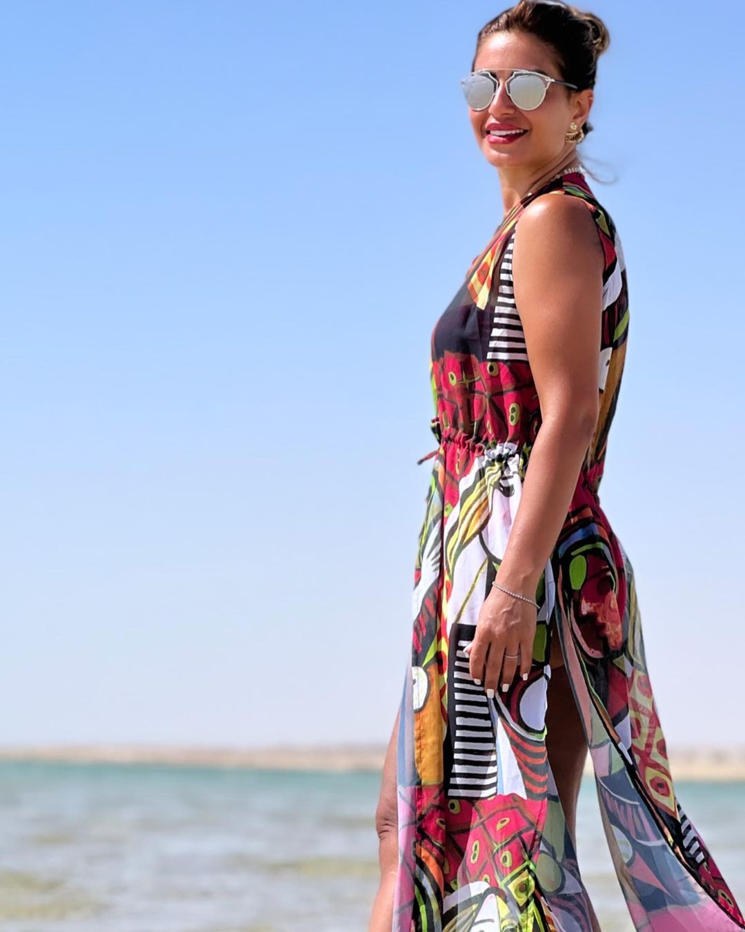 ظهرت منة فضالي في الصور التي شاركتها مع متابعيها عبر موقع انستجرام، بإطلالة مثيرة كشفت عن أجزاء من جسدها، اذ ارتدت مايوه تعمدت خلاله إظهار ساقيها، وعن الإكسسوارات فارتدت نظارة شمسية لتقاوم أشعة الشمس، وبدت منة فضالي خلال الصور بشكل مرح وضحكة خطفت أنظار الجمهور إليها.