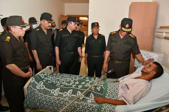 قام الفريق أول محمد زكى القائد العام للقوات المسلحة وزير الدفاع والإنتاج الحربى بزيارة عدد من مصابى العمليات الحربية من الضباط وضباط الصف والجنود من أبطال القوات المسلحة والذين أصيبوا أثناء أدائهم لمهامهم فى التصدى للإرهاب بمدن شمال ووسط سيناء ويخضعون للعلاج حالياً بالمجمع الطبى للقوات المسلحة بكوبرى القبة والمعادى.