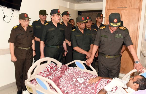 واطمئن القائد العام للقوات المسلحة خلال الزيارة على توفير أقصى سبل الرعاية الصحية للمصابين ، وأوصى بتوفير كافة الإمكانات الطبية والعلاجية والرعاية الطبية الفائقة وسبل الدعم لهم بإشراف نخبة من الخبراء والأطباء المتخصصين لمتابعة الحالة الصحية لكافة الأبطال.