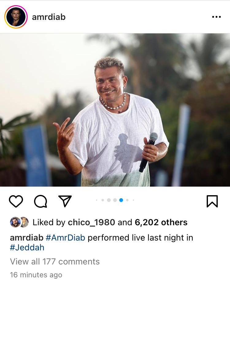 شارك الهضبة عمرو دياب متابعيه عبر انستجرام، لقطات من حفله الأخير في جدة