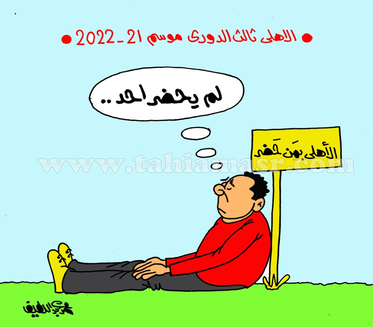 رصد كاريكاتير تحيا مصر أجواء شعار النادى الأهلى الذى يتم ترديده دائما (الأهلى بمن حضر) وذلك فى ضوء الخسائر المتتالية التى يحققها فى الدورى العام أمام جميع الفرق المصرية بعدما نجح نادى الزمالك فى حصد البطولة مبكرًا.