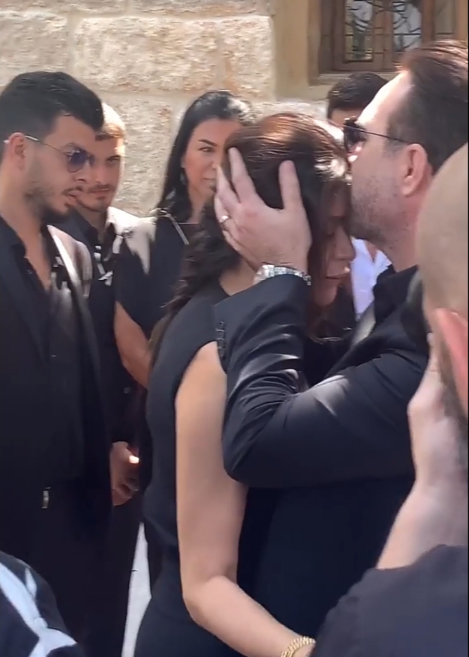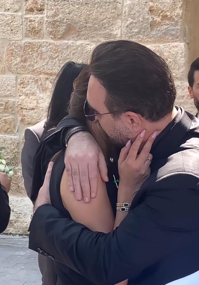 بالأحضان والقبلات.. وائل جسار يواسي نادين الراسي في جنازة شقيقها جورج