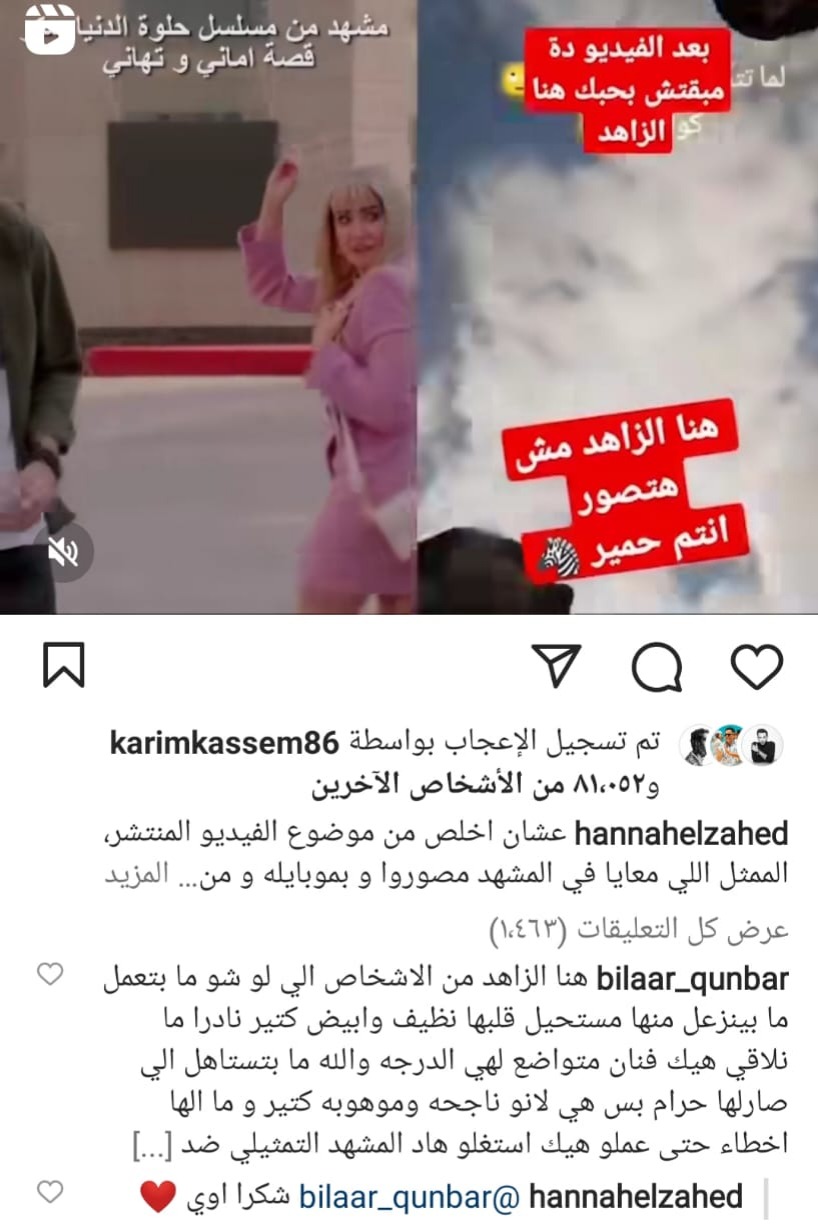 وتوالت التعليقات من الجمهور لدعم هنا الزاهد مشيدين بإحترام هنا الزاهد، وجاءت التعليقات كالآتي: "حسبي الله ونعم الوكيل في اللي هاجموكي، أنتى أنسانة محترمة، انا صدقته فى الاول لحد ما شفت المشهد فى المسلسل، متزعليش نفسك يا هنا" وغيرها من التعليقات.