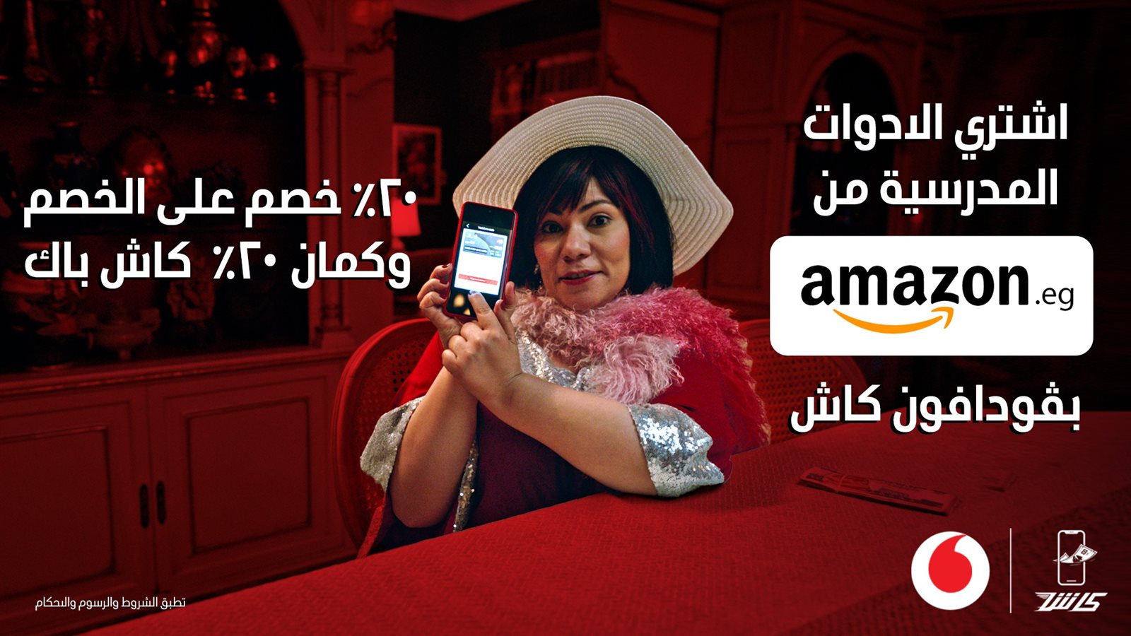 نشرت فودافون عبر صفحتها الرسمية على موقع "فيسبوك"،: "المدارس على الأبواب..وفري دلوقتي واشتري كل احتياجات المدارس اونلاين من Amazon.eg بكارت ڤودافون كاش للدفع اونلاين و ليكي 20% خصم على الخصم و كمان 20% كاش باك!".