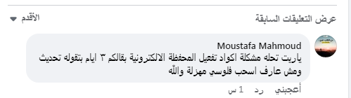 علق عميل بنك الاسكندرية عبر صفحة المصرف على موقع "فيسبوك"،: "ياريت تحله مشكلة أكواد تفعيل المحفظة الإلكترونية بقالكم ٣ أيام بتقوله تحديث ومش عارف اسحب فلوسي مهزلة والله".