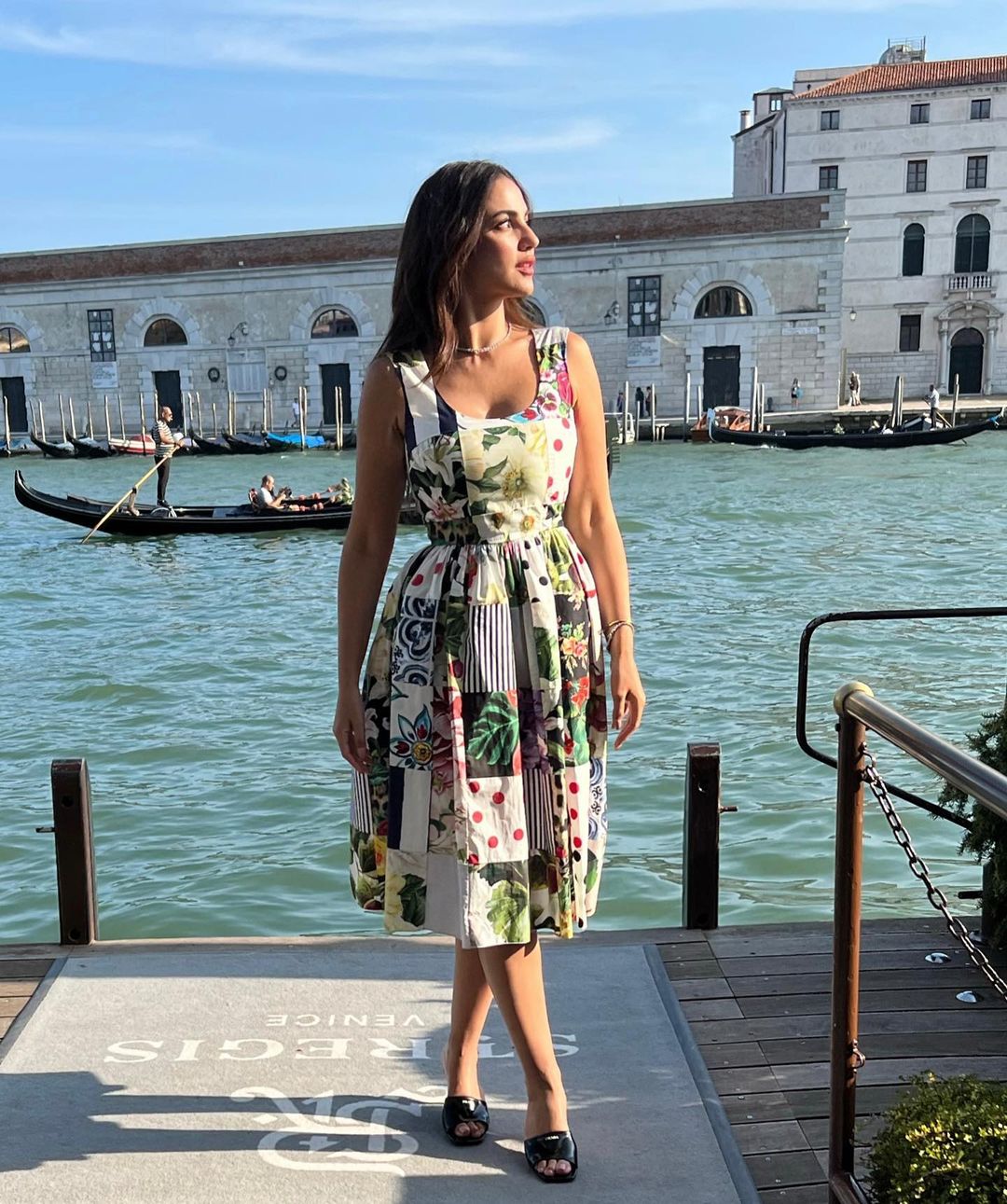 خطفت أيقونة الموضة والأناقة الفنانة درة أنظار الجمهور في أحدث ظهور لها، اثناء تواجدها فى مدينة فينيسيا الإيطالية، للمشاركة في فاعليات المهرجان الذي يقام الان تحت شعار الإحتفال بدور المرأة في السينما.