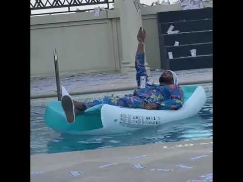 محمد رمضان يرمي الدولارات في المسبح