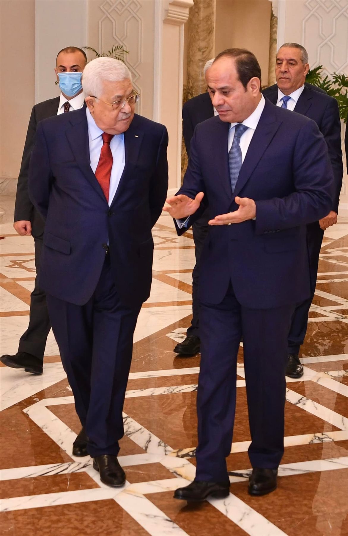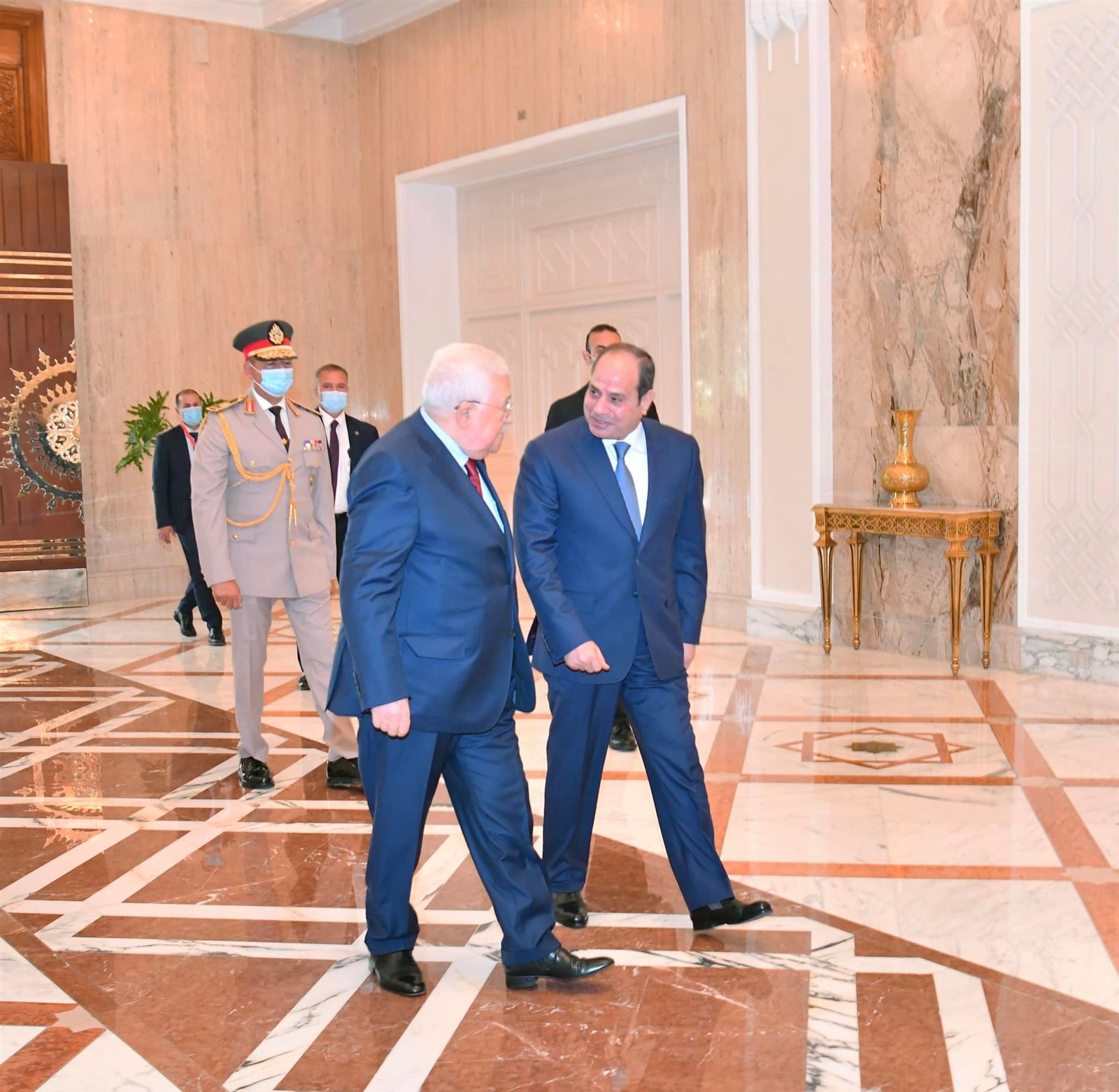وقد رحب الرئيس، بأخيه الرئيس محمود عباس، مؤكداً استمرار مصر في تقديم كل الدعم الممكن للقضية الفلسطينية، بما يضمن تحقيق التطلعات المشروعة للشعب الفلسطيني الشقيق وفق الثوابت القائمة على مبدأ حل الدولتين وإقامة الدولة الفلسطينية المستقلة على حدود ١٩٦٧ وعاصمتها القدس الشرقية، ومشدداً على أهمية تكاتف كافة الجهود خلال المرحلة الحالية من أجل دعم الموقف الفلسطيني والحفاظ على التهدئة، خاصةً في قطاع غزة.