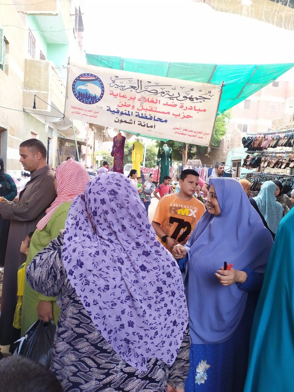 وفي محافظة الدقهلية، أقامت أمانة مركز السنبلاوين، معرضا لبيع المستلزمات والأدوات المدرسية وكافة إحتياجات الأسر، بأسعار مخفضة، وذلك لمحاربة الغلاء، تحت شعار "أهلاً بالمدراس"، بحضور محافظ الدقهلية وأعضاء هيئة مكتب الحزب، ويوفر المعرض مستلزمات المدارس والشنط المدرسية، والزي المدرسي، والأدوات، والحقائب، والأحذية، لعرضها بأسعار مخفضة لأهالى المركز، مع وجود تخفيضات هائلة وأسعار تنافسية، وشهد المعرض اقبالا من المواطنين الذين أثنوا علي الأسعار، ويستمر لمدة شهر.
