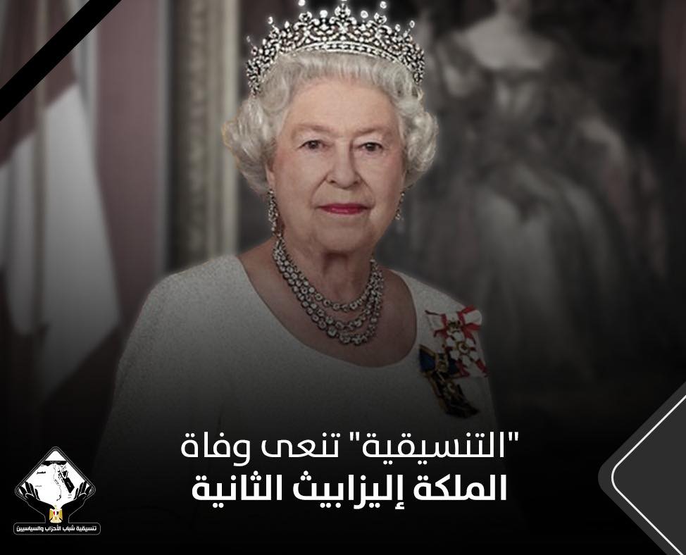 نعت تنسيقية شباب الأحزاب والسياسيين بخالص الحزن والأسى للعائلة الحاكمة البريطانية والشعب البريطاني وحكومته وفاة الملكة إليزابيث الثانية.