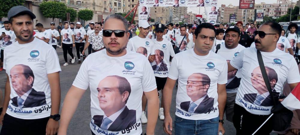وانطلق ماراثون مستقبل وطن، في تمام الساعة الثامنة صباحاً، بمشاركة 1000 متسابق، لمدة نصف ساعة سيراً علي الأقدام، من المقطم إلي الإسمرات.