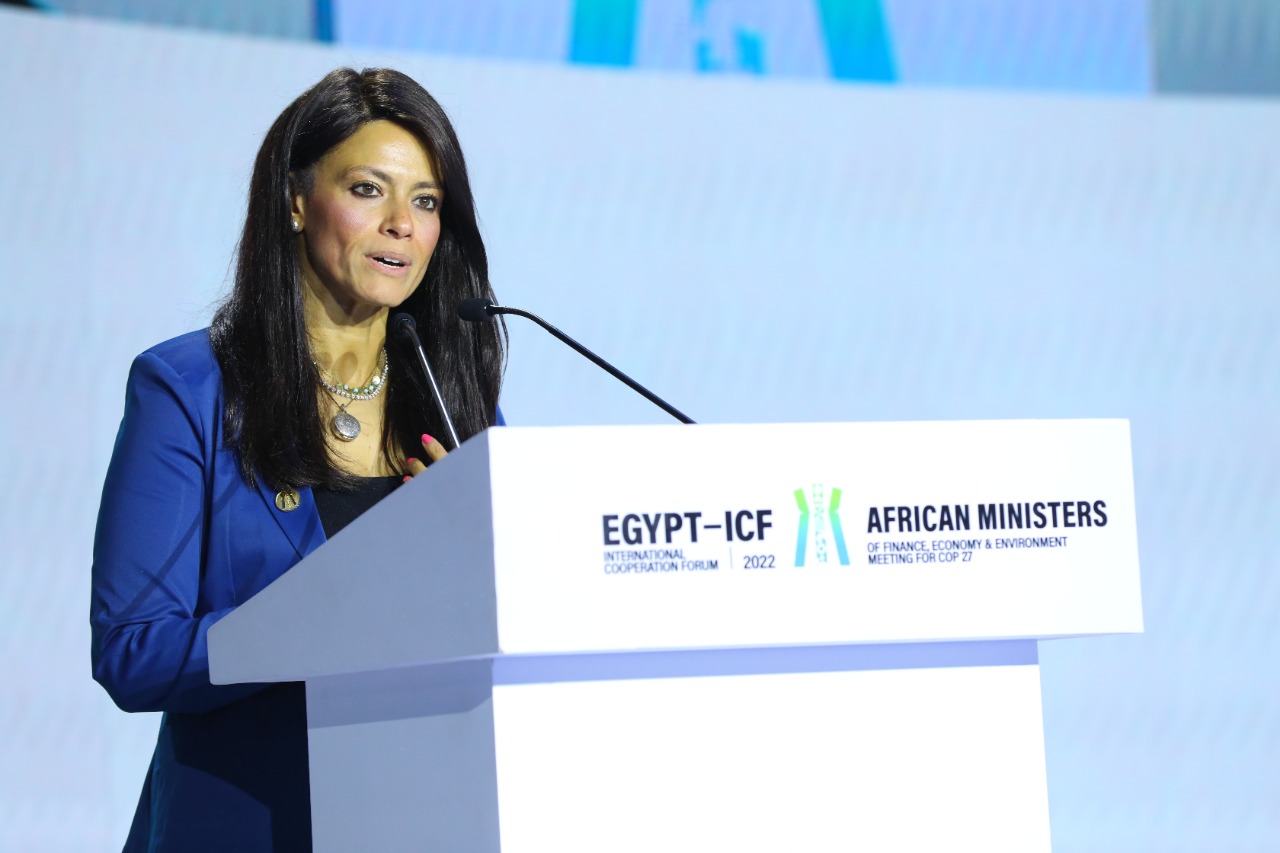 الدكتورة رانيا المشاط وزيرة التعاون الدولي خلال المائدة المستديرة رفيعة المستوى ضمن منتدي مصر للتعاون الدولي والتمويل الإنمائي Egypt-ICF 2022 حول المنصة الوطنية للمشروعات الخضراء برنامج "نُوَفِّي"