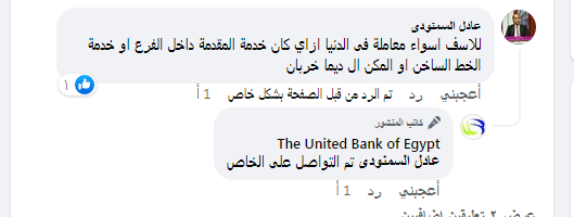 قال عميل بنك المصرف المتحد عبر صفحته الرسمية على موقع "فيسبوك"،: "للأسف أسوأ معاملة فى الدنيا إزاي كان خدمة المقدمة داخل الفرع أو خدمة الخط الساخن أو الماكينات دائمًا لاتعمل".