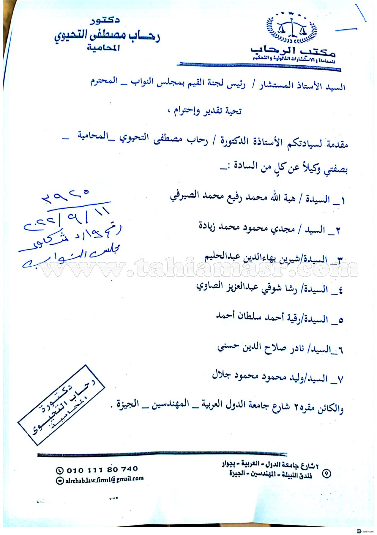 الخطاب الذى أعلن أعضاء نادى هليوبوليس التقدم به يتم من خلال الدكتور رحاب التحيوى، المحامية التى حصلت على الحكم الخاص بمنصب نقيب المهندسين ومنع النائب أحمد عثمان من الترشح بسبب التفرغ أيضا، حيث تضمن الخطاب مناشدة لجنة القيم بمجلس النواب، بنظر أمر الجمع بين عضوية مجلس النواب ورئاسة هيئة رياضية مستقلة من منطلق أن هذا الأمر مخالف لضوابط العضوية، ولجنة القيم منوط بها هذا الأمر وفق اللائحة الداخلية لمجلس النواب.