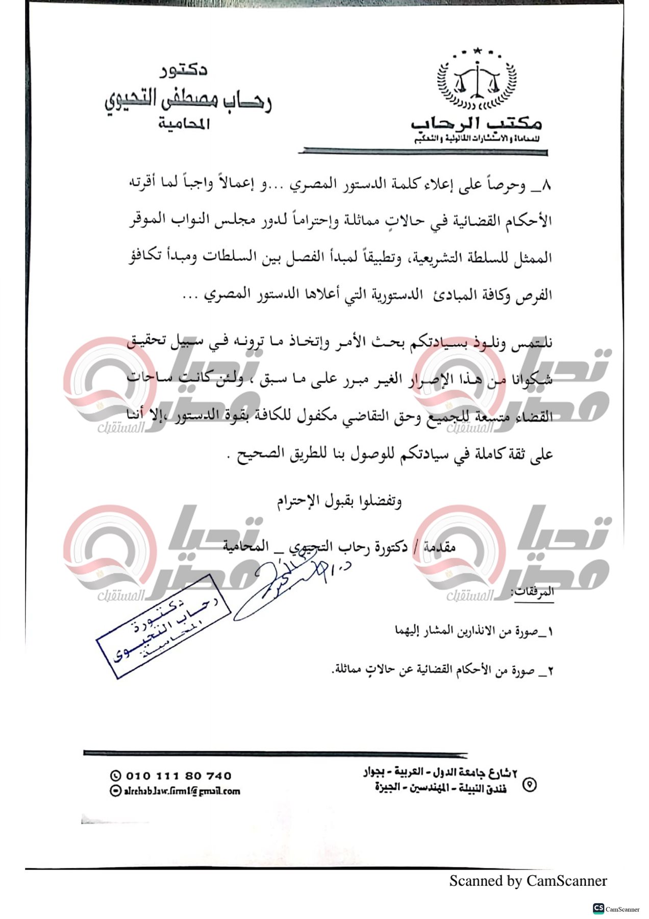 وسبق لموقع تحيا مصر أن قام بنشر نص الإنذار الذى تقدم به أعضاء النادى للنائب عمرو السنباطى بشأن هذا الأمر، فى الوقت الذى قام موقع تحيا مصر بالتواصل مع النائب عمرو السنباطى لإتاحة فرصة التعقيب والذى بدوره أكد تقديره للجميع ولكن القضاء هو الفيصل فى كل الإجراءات وأنه ملتزم بصحيح القانون وحكم القضاء، وأنه بدلا من إطلاق أى شائعات على أى شخص أن يتوجه للقضاء.