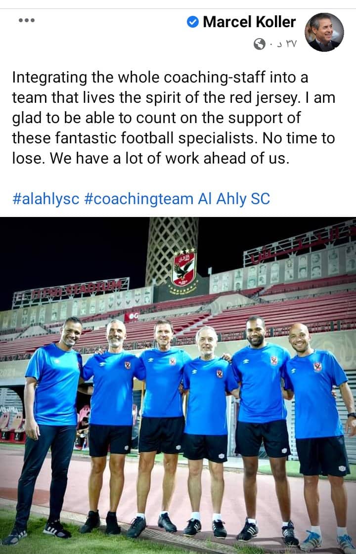 وكتب كولر: “ دمج طاقم التدريب في فريق يعيش روح الأحمر، أنا سعيد لأنني قادر على الاعتماد دعم هؤلاء المتخصصين الرائعين في كرة القدم”.