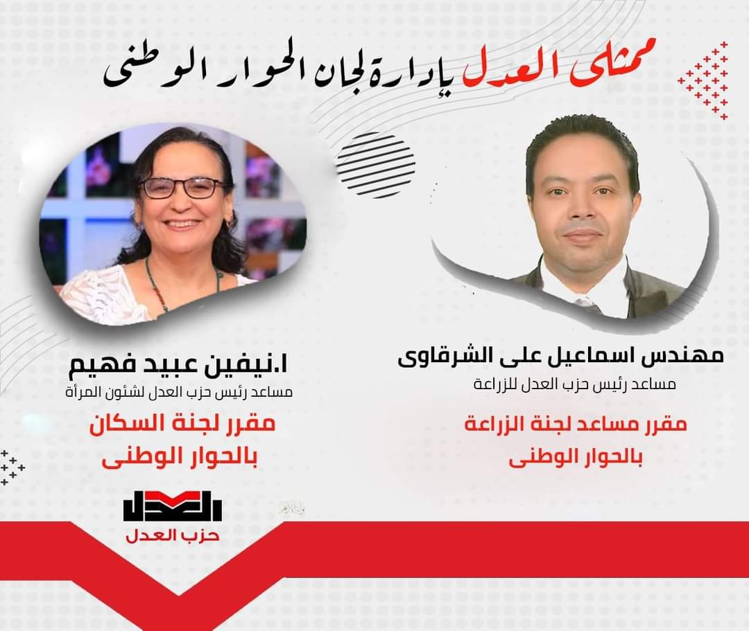 تعرف على نفين والشرقاوى مساعدا رئيس حزب العدل بعد اختيارهم ضمن تشكيل لجان الحوار الوطنى