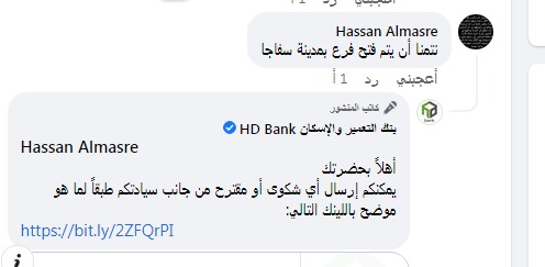 نشر عميل بنك التعمير والاسكان عبر صفحته الرسمية على موقع "فيسبوك"، :"نتمنى أن يتم فتح فرع بمدينة سفاجا".